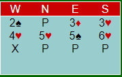 Slik det gikk her ville aldri N/S fått spille 5 hjerter, og Ø/V vil aldri funnet på å melde slem etter denne utviklingen hvor de altså allerede hadde stoppet i 4 spar.