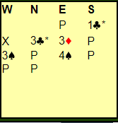 Nord tenkte kanskje at her hadde de gjort det ganske bra, sperret godt, og at det førte til at de ikke fant en slem som ville vært enkel å vinne om de hadde meldt den. Men det var likevel Ø/V med +620 som vant spillet. Meldingene ved det andre bordet gikk altså slik som beskrevet i utspillsprøven øverst: