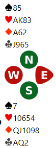 Vest har ikke noe helt desidert utspill, eller hjerter ess peker seg vel ut, for øst har ganske sikkert maks en hjerter. Hjerter ess felte imidlertid kongen hos øst, og i neste stikk kom hjerter til stjeling. Derfra kom ruterskift. Det som for sekunder siden så ut som mulig doblet beteplukk for øst var plutselig ikke så morsomt.