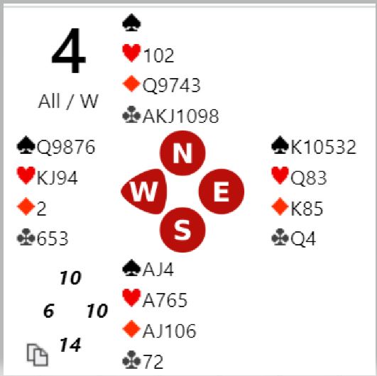 Fem av 16 N/S-par var i slem, tre av dem i ruterkontrakt hvor en ikke behøver å tape kløverstikk, fargen kan trumfes god. Ett par var i 7 ruter! Da ruterfinessen gikk bra og kløveren enkelt ble godspilt ble det en formidabel +2140 til notering ved det bordet.