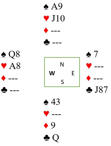 Men Sunde hadde fått kontrakten på østs hånd. Syd tok for ruter ess og resten stod. Selv ville nok tenk vel og undert lenge før det utspillet og kanskje prøvd en spar, eller kanskje...? Ja, liten ruter ut er litt fristende for å forsøke å få inn makker. Om nord har knekten blir det en spesielt vakker bet, ruter unna A-K-Q til knekten, kløver til stjeling! Men denne gangen blir et sånt ekspertutspill som gir lang nese hos utspilleren idet blindemann dukker opp med ruter knekt-10...