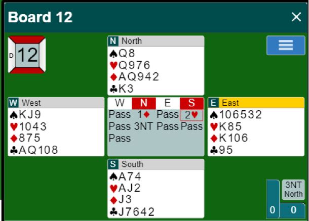 I 5 hjerter er det minst to doblede bet, men da røyken hadde lagt seg var spillefører gått fire doblede, N/S +1100. Spillet ga 15 IMP til STREET, størstedelen av ledelsen deres halvveis i kampen.