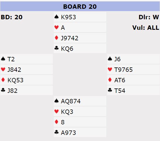 Ved det ene bordet spilte i akkurat den runden to spillere som til vanlig ikke spiller sammen N/S. Ved det andre bordet satt et vel etablert makkerpar N/S, paret som tidligere i uken hadde vunnet NZ Pairs.