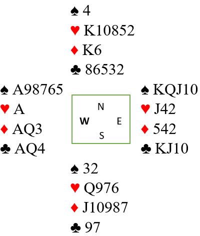 Med trumf- eller kløverutspill får ikke spillefører den opplysningen at nord har K-Q i hjerter. Da er det ikke så enkelt. Og hjerterhonnørene sitter mer sannsynlig fordelt slik at innspill med knekten som går til nord etter ruteravkast fra vest i tredje hjerterrunde ikke fungerer, for syd bør legge på honnøren sin over knekten. Men å bare satse utelukkende på ruter konge hos syd er ikke godt nok spilt. Det handler alltid om å maksimere sjansene sine.