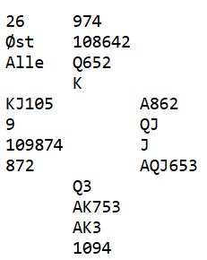 Det er også et spørsmål om vest burde ha meldt over syds 1 hjerter innpå. Det er lett å si det burde han ha gjort når en ser hvordan hele sitsen er, men om øst ikke har så fin hånd for sparkontrakt kan det bli galt å melde.