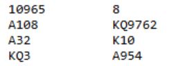 Arnt Ola Løhre har fortalt meg om et spill fra Rondacupen forleden hvor det skjedde noe ganske merkelig. Her er hva Ø/V satt med, og de meldte temmelig hardt, nesten som om de hadde stjålet kortene: