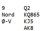 Hvis du ikke denger ned den andre kløverhonnøren blir dette grusomt for deg og makker, for slik ser hele spillet ut: