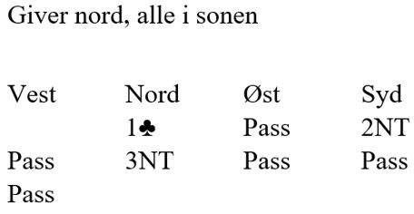 Du sitter vest og skal spille ut mot 3NT etter dette meldingsforløpet:
