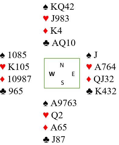 Syd for lag Hauge prøvde seg på singeltonutspill, hjerter 9. Det ble feil:
