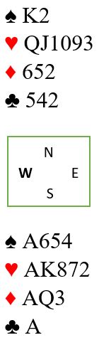 Hvis kløver ess spilles blir det selvsagt ingen problemer. Men vest kan også være den som har firekorts kløver. Med denne sitsen kan det bli to kløvertapere om kongen spilles først. Og om kløver ess spilles tidlig får vest to kløverstikk om esset spilles først.