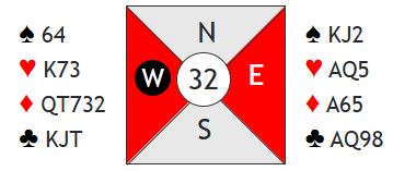 Det er ni sikre stikk (1+3+1+4=9). Ved flere bord der spar kom ut mot 3NT tok spilleførerne de ni stikkene før de spilte ruter ess og mer ruter i håp om ett eller kanskje to overstikk hvis ruter konge var plassert hos syd. Og syd satt med ruter konge, så det ble ett overstikk til spillefører til slutt. Men var det godt nok? Slik så hele spillet ut: