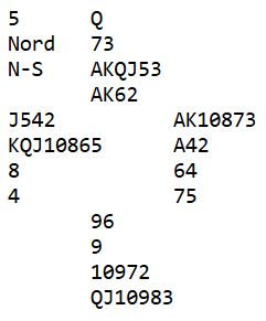 Dermed fikk Ø/V spille 5 hjerter, og da nord prøvde å ta kløverstikk ble det tolv stikk; Rogaland +480, og spillet ga dermed 13 IMP til Midt Trøndelag 1.
