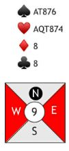 Vest passet og indikerte dermed lik lengde i minorfargene, så han slapp å preferere minor selv og kunne pga. doblingen la avgjørelsen gå tilbake til øst. Øst meldte da 3 kløver, og Moen doblet nok en gang. Hva ville du nå meldt som nord? Eller ville du kanskje meldt forrige gang (over 2NT doblet) for kanskje å få vist fordelingen din bedre?