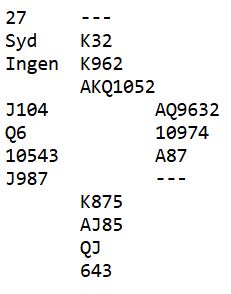 Om syd åpner med denne litt rustne 11-poengeren kan nord bli sleminteressert. Hvis ikke blir det normalt utgang i kløverkontrakt, eller 3NT.