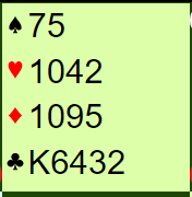 Makker meldte jo kløver, men det betyr for de fleste ikke nødvendigvis kløverfarge. Han har åpning, og honnørene hans kan godt være andre steder enn i kløver. Likevel er vel kløver ut ganske normalt?. Eller skal du forsøke ruter 10? Eller trumfutspill, kanskje? Hva er normalt og hva er å være lur her?