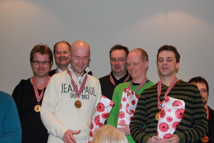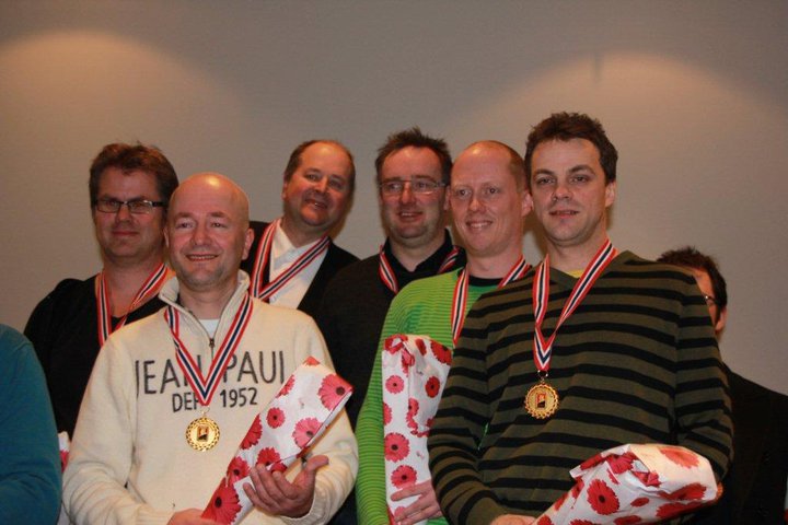 Til slutt dro Vestfold 1 det lengste strået i serimesterskapets 1. divisjon. På bildet (fotograf, Svein-Jarle Ludvigsen) fra venstre; Gjermund Rekstad, Ole Kristian Kopstad, Kjell Otto Kopstad, Jan Tore Berg, Petter Tøndel og Odin Svendsen.