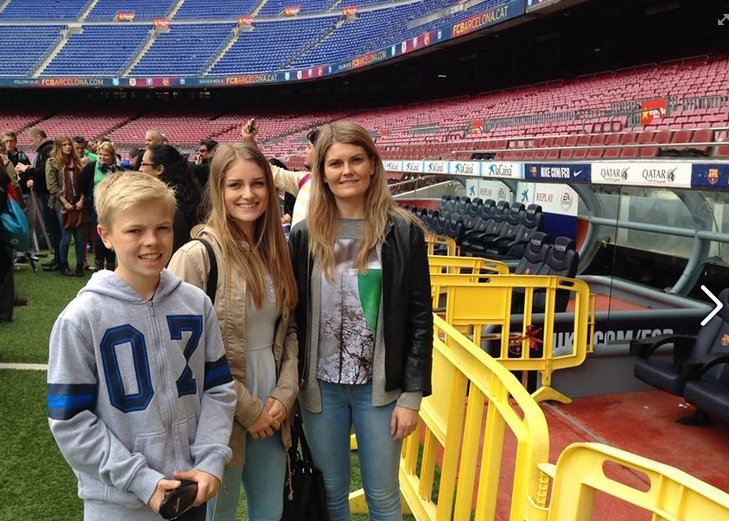 Ann Karin Fuglestad med sine håpefulle, her på Nou Camp i Barcelona.