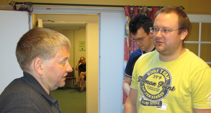 Så stjeler jeg en morsom historie fra Tommy Sandsmark, toastmaster under banketten. Tommy hadde ødelagt akillessenen da han spilte Akademiskturneringen for mange år siden med svensken Max Ødlund. Tommy satt med beinet på en stol når han spilte, og mellom bordene hinket han avgåre på krykker. En omtenksom meddeltaker hadde spurt svensken om det var slitsomt å spille med en handikappet makker. "Neida, det går rektigt så bra", sa Max Ødelund. "og så har ju Tommy vondt i benet også"
