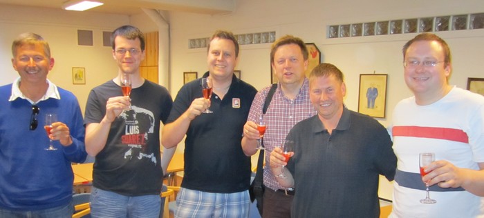 Vinnerlaget med siste lunch: Lars Arthur, Erik, Geir, Glenn, Allan og Terje