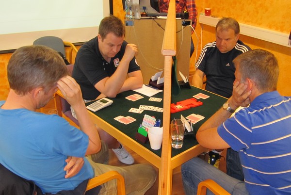 Geir og Erik tok de fire første stikkene etter hjerter til konge og ess, to ganger ruter og hjerter knekt.