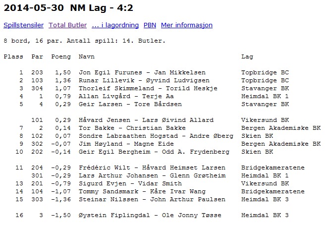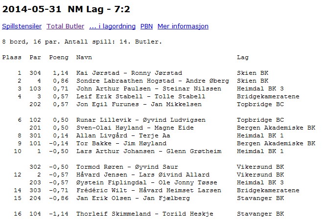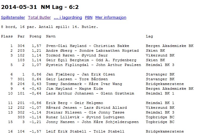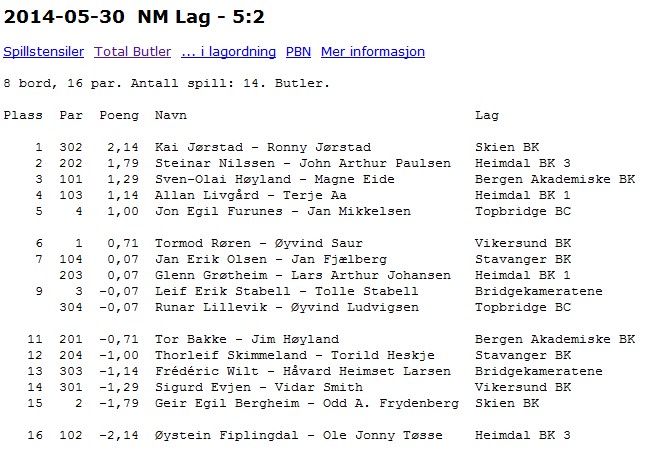Det skal sies at det ble tungt å svelge det første spillet (av 3) da Morten klinket ut Ruteress i en knallhard 4 Spar. Dette gjorde at motparten fikk den hjem og hadde solid overtak i turneringen med rein topp.