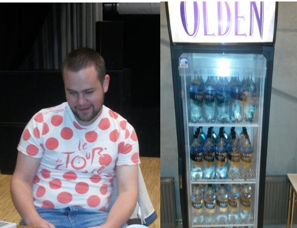 Karl Morten Lunna i klatretrøye. Til høyre er sponsor OLDEN.