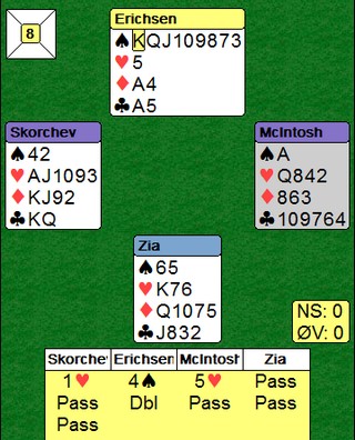 Det er bare de parene som har spilt minst 4 av 5 spillekvelder som får være med i sammendraget. På spill 24 siste spillekveld ble det skrevet 3 nt -8 mellom par 5-3. Dette resultatet er feil og skulle vært 3 nt 11 stikk. Dette utgjør 8 poeng i + for par 3. Det er % som teller istedet for poeng da det er forskjellig antall par hver spillekveld.