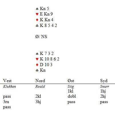 Jeg frir meg i ruter og claimer i det jeg venter et anerkjennende blikk fra makker, Roald Mæsel.