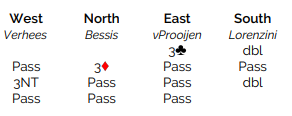 Skrekkeksemplene fra kampen er mange, men det verste spillet var langt over grensen til ren komikk. Det var en helt håpløs slem i kløver motparten vant hvor de satt med ♦ 872 mot singel dame. Det var ganske lett å se da blindemann kom ned at denne slemmen trolig ville gå bet. Så gikk spillet i forrykende fart, klikk-klikk-klikk-klikk, og til slutt vant spillefører TO STIKK I RUTER!