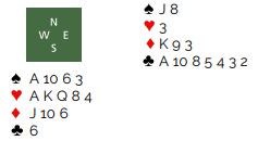 Han spilte spar fra nord, og øst fulgte med spar 10, syd la knekten og vest kongen. Det kom nok en kløver til esset, fra nord forsvant da en hjerter. Syd spilte spar ess, og joda, øst kom på med damen! Spar 9 tok ut forsvarets siste trumf. Det lysnet for han, men det ser likevel ut til at det kan bli bet hvis det blir to hjertertapere og en i ruter i tillegg til det trumfstikket han allerede har gitt bort. Sjansen for å vinne kontrakten har imidlertid økt betraktelig.