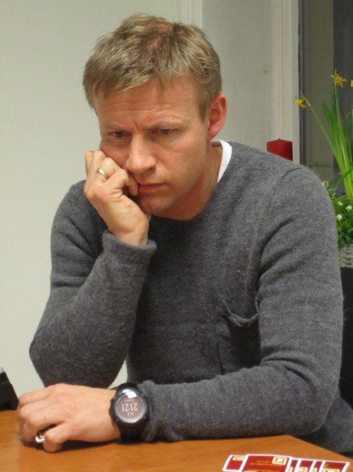 Han fikk sparess og spardame ut i 3NT. Så seks ganger kløver og øst sliter. Gaute Ubostad blanka både hjerteresset og ruter kongen, men Tom leste rett og spilte ruter til esset. Neste gang rister du litt mindre på hodet i avkast, Gaute :-)