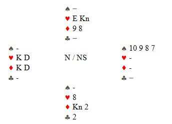 Hvis du mener at en treningskamp som dette skal være prikkfri så trenger en vel ikke noe trening? Det er i slike kamper at en får belyst problemstillinger som en ikke har tenkt på før. Og dette er en problemstilling som krever litt mer enn å si at 1KL 3SP er 1444 og krav til utgang. Jeg vil gjerne belyse hvordan jeg ser på dette. (Kortene er i artikkelen under denne)