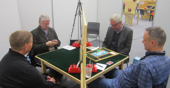 I spill 1 kom Jon og Arild i 4sp på 4-2. Det har neppe skjedd siden Koreakrigen, i alle fall Vietnamkrigen. Noen spill seinere bommer de på NT-intervallene og havner i 3NT med 12 mot 9 hp. Tor dobler, men Geir oppfatter det som spar ut (bordet "meldte" farge). Så finner Arild ruteren ved å kappe på nieren og får fem stikk der. I sluttspillet forsvinner enda et stikk og Noralia berger med en beit (!) for -200. Likevel en syver ut med 2sp N 6 stikk på det andre bordet.
