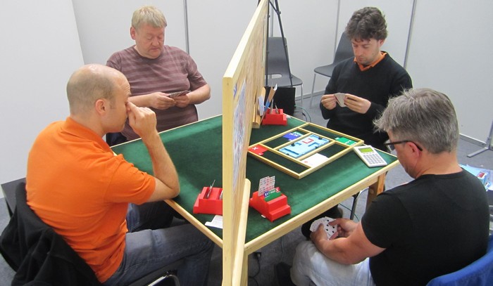 På det andre bordet spiller nederlenderen ikke så bra. Han stikker kløveren og fortsetter med spar ess og spar til stjeling. Så kløver mot bordet, men Børre bare stikker og spiller trumf til bordets ess. Kløverknekten kan Ole i syd stjele og de ti stikkene har blitt til ni.