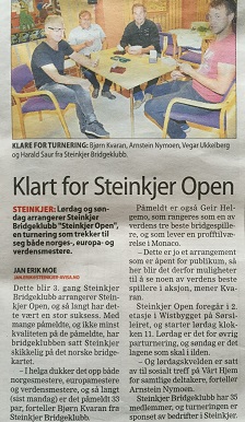Jeg synes oppslutningen om norske turneringer er stigende. Vi har 38 par i dag og det er langt over det antall vi ville hatt for noen år siden. Det jobbes bra!!