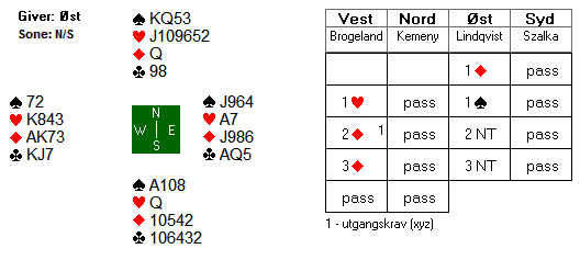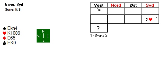 Mange spill gir forholdsvis få problemer under meldingsforløpet mens andre er mer krevende. Klarer du og makker å melde denne til beste kontrakt og med full kontroll? Ø gir.