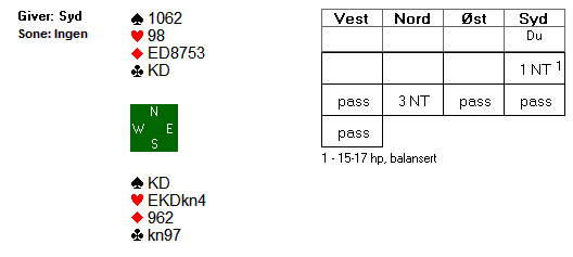 Som vi ser satt øst med kongen singel bak og en del spilleførere ble hardt straffet for å spille ruter til dama. Da måtte det bli beit i kontrakten. Med den aktuelle sitsen fungerer alle andre måter å behandle ruteren på. Å legge ned esset, å spille nieren rundt eller å spille liten ruter fra bordet i stikk to gir deg de ruterstikkene du trenger for å vinne kontrakten.