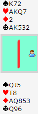 V åpner med 2 ruter og Ø håper at makker har god farge, for da er utgang trolig mulig, men mangel på ess er klart minus!