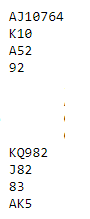 Spill 27 (vridd så spillefører er syd)