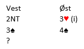 Man kan jo som vest passe over 3 hjerter, for det blir krav (øst har krevd til utgang).
