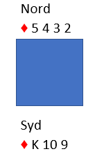 Merk at i denne sluttposisjonen ville spillefører vunnet 4 hjerter selv om vest sitter med AQJ i ruter! Men om det sitter slik kunne forsvaret betet kontrakten med ruter tilbake fra øst i andre stikk, dog ikke noe opplagt utspill da øst ikke vet at syd har singel kløver.