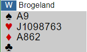 Brogelands friske 4 hjerter-melding fungerte bedre da hele spillet så slik ut: