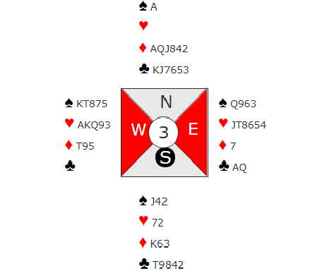 Men over 3 ruter hadde Nord en liten pause, det kan tyde på litt kort men, men så pass trolig fordi styrke ikke tilsa aksjon, innmelding eller dobling. Nord har jo ingen sikker fasit for Øst sin styrke. Jeg hadde jo ikke tillegg og passet, og det samme gjorde Syd. Spillet ble enkelt, det var 2 tapere i hjerter, 1 taper i kløver og 1 taper i spar med den fargen 3-2 imot. +110 til ØV, men det rare var at bare vi hadde score vår vei. Alle andre hadde positiv score N-S sin vei.