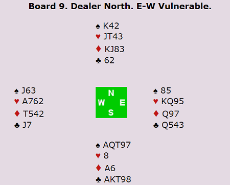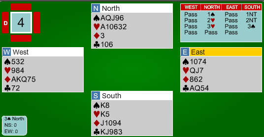 I neste spill fikk vi se et klassisk eksempel på at lilleslem i minor av og til kan være en bedre kontrakt enn 3 grand: