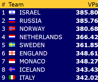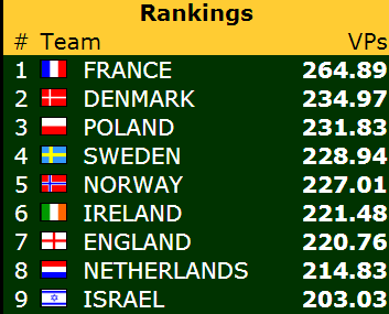 Etter ni stikk i 3 grand ble det 6 IMP til Frankrike.