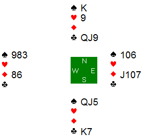 Franskmennene meldte seg opp i 3 grand på vests hånd. Nils hadde tidenes enkleste utspill, og innkasserte raskt fem kløverstikk og sikret beit i kontrakten før spillefører kunne kreve resten.
