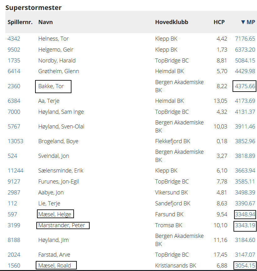 At alle disse fire spillerne er på den eksklusive lista over spillere i Norge som har passert 3 000 mesterpoeng, er med på å understreke hvor meritterte de faktisk er: