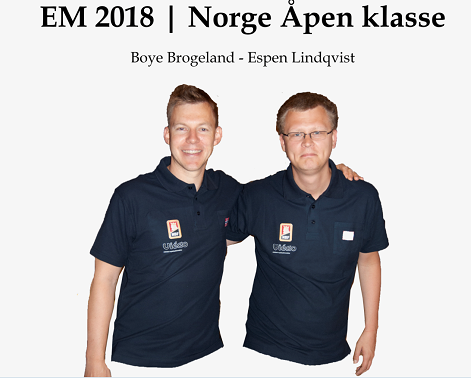Norge stiller lag i åpen-, dame,- og veteran- klassene. Først ute var landslagene i åpen klasse som kl 10.00 onsdag6. st5artet full «Round Robin», alle mot alle over 11 dager, totalt 33 kamper pluss en walk over. Det møter nordmennene de sterkeste motstanderne på slutten, så det gjelder å sope inn mye mot de antatt svakere. 1. runde mot Hellas gikk ypperlig, allerede fra start var Nils Kvangraven (N)- Ulf Tundal (S) i åpent og Boye Brogeland (V)- Espen Lindkvist (Ø) i lukket kraftig på hugget. Hjemmeseier 60-0 imp var formidabel start. Ledelse allerede, men det er lang og krevende løp framover. Gl videre!