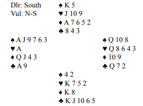 Med slikt ender det jo som regel i 3 grand selv om det er et nokså håpløst foretagende – det er jo tross alt 26 HP N/S. Ser du noen mulighet for ni stikk etter spar ut fra vest?