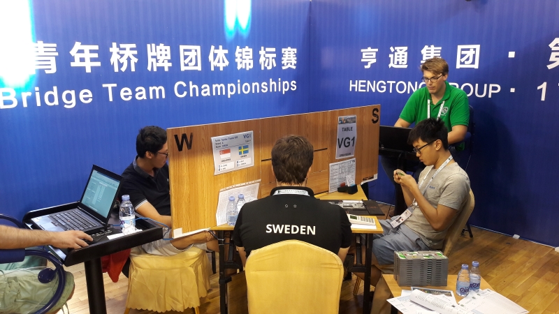 Singapore har for øvrig imponert i løpet av mesterskapet. I kvartfinalen lå de hele 40 IMP bak mot USA, som vant Round Robin, før de 14 siste spillene. De jobbet seg mesterlig tilbake, og etter 15 IMP inn i siste spill, vant med tre IMP! I semifinalen ble det en svært jevn batalje mot sterke Polen, hvor Singapore til slutt trakk det lengste strået. Selv om de vært svært nære gullet, vil nok Singapore si seg fornøyd med VM-sølv når de får summet seg.